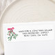 This festive return address label is decorated with watercolor mistletoe, berries, and ribbon.