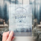 Misty Blue Mountain Pines Calligraphy Wedding Acrylic Invitations
