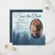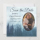These beautiful save the date cards are the perfect way to let your friends and family know about your upcoming wedding. They feature a rustic watercolor design with a forest of blue mountain pine trees. The caption reads Save the Date with space for your names, the date, and location. The back is a marbled blue grey colour. Perfect for an outdoor or mountain destination wedding.