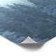 This beautiful wedding seating chart features a rustic watercolor of a wooded mountain side covered with blue pine trees and shrouded in fog or mist. The title reads "please find your table" in elegant lacy script calligraphy. There is space for the up to 250 names with the names of the couple and wedding date below. Perfect for an outdoor or mountain destination reception.
