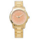 An orange wrist watch in soft colours, pastel orange with white numbers and misty fading colour or frosted edge look design, simple and elegant. Orange is a cheerful colour of optimism, warmth, generosity and higher consciousness. Pretty peachy! This upscale gold style is sure to please. You can also choose a different style, or styles for men & kids. The options are endless. A great gift for friends and family for special occasion, birthday, Christmas or anytime you please. Original design in warm colours, Sylvia Chaume. Please visit me on Twitter @Sylvia_FineArt. Have a great day!