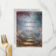 Bring a touch of woodland magic to your wedding table with this Enchanted Floral Forest Wedding Menu Card, featuring a misty forest path surrounded by soft wildflowers in shades of purple, pink, and blue. Tiny glowing fairy lights sparkle gently among the trees, creating an ethereal, romantic atmosphere that’s perfect for a forest, garden, or twilight celebration. This design captures the feeling of wandering through a dreamy, enchanted woodland just as the stars begin to appear. Elegant and whimsical, it pairs beautifully with enchanted forest wedding themes, outdoor ceremonies, or nature-inspired decor.