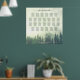 This beautiful 26 table wedding seating chart has table assignments for 260 guests at the traditional seating arrangement of 10 people per table. The rustic yet elegant design features a misty woodland forest of green pine trees in. The title reads "please find your table" in elegant lacy script calligraphy. There is space for the couples' names and wedding date. Perfect for an outdoor or mountain destination wedding.