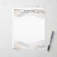 Borders on the top and bottom of this stationery paper resemble distant hills, shrouded in mist. An abstract wave design, rendered in earth colors of beige and gray, very modern and stylish, perfect for professional or casual correspondence.