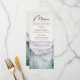 Present your wedding meal in style with this elegant, nature-inspired menu. The beautiful watercolor design features a misty mountain and forest landscape, creating a sophisticated backdrop for your culinary selections. Easily customise the menu with your chosen dishes. A perfect complement to your rustic or outdoor wedding theme.