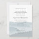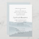Misty mountains wedding ceremony invitation with names of both sets of parents. A forest and blue-grey mountain ridges are the background for lots of custom text. First names of the couple are printed in large letters. The parents are inviting guest to the marriage ceremony "uniting their children". At the bottom the reception venue address can be included. Reverse contains a matching blue grey pattern. Notched corners are optional. Please contact me at bluehydpdc@gmail.com for wording changes if needed.