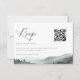 Misty Mountain Watercolor Landscape, Wedding QR code rsvp card. Elegant signature script graphic "Rsvp" title, with black colour backing.