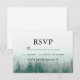 Modern photographic style wedding RSVP card design featuring an enchanting misty forest scene.