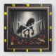 Imagine a stunning clock that features a majestic black Friesian horse gracefully cantering through a foggy forest. This captivating image captures the beauty and elegance of the horse as it moves effortlessly among the tall, shadowy trees, creating a sense of mystery and adventure. The clock is framed by a sleek ½-inch flat black wooden border that adds a modern touch, while the embedded wood showcases deep carvings with a charred, textured grain. The rugged burn marks in shades of red, grey, and black create a striking contrast against the lighter wood, making this piece not just a functional clock, but also a work of art that can enhance any room's decor.