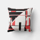 Mix of Black Red on White Geometric Abstract Art Cushion