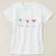 Tee shirt features a row of three mixed drink cocktails: Martini, Manhattan, Cosmopolitan. Created from an original watercolor illustration.