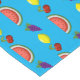 Mixed fruit makes up this colourful table runner. Customisable so you can add your own text and change the background colour. This design is sure to bring some smiles!