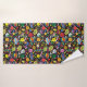 Mixed pickleball doodle on black. Perfect as a gift for pickleball player. Bath Towel Set with black pickleball motif and custom text