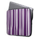 Stylish custom neoprene laptop sleeve features purple and white stripes in varying widths.