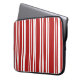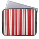 Stylish custom laptop sleeve features red and white stripes in varying widths.