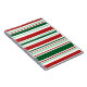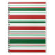 Plan your holiday party and gift lists with this stylish notebook featuring a modern Christmas pattern of red, mint green, dark green, and white stripes in varying widths.