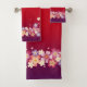 Mixed Sakura Blossoms Kimono Style Red & Purple Bath Towel Set