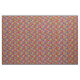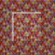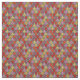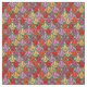 This fabric has an art deco design of tulips from pentagons and trapezoids in orange, red, purple, gold, and green.