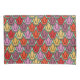 This pillowcase has an art deco design of tulips from pentagons and trapezoids in orange, red, purple, gold, and green.