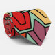 This necktie has an art deco design of tulips from pentagons and trapezoids in orange, red, purple, gold, and green.