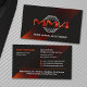 A bold business card design for Mixed Martial Arts instructors, coaches, and gyms. The front features a striking MMA logo with octagon cage detail in a fiery red gradient, paired with clean modern typography. The back provides ample space for name, title, contact details, and services — including striking, grappling, conditioning, private coaching, and competition prep. Perfect for solo practitioners or small gyms looking for a strong, professional presence without the need for a custom logo.