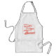 Cute, heavy duty apron with wide front pocket. Light to wear and easy slip on and off. Shorter length perfect for my 5 ft frame. I love it! Wording and print looks good with clear borders. Stitching is good, nicely finished.