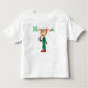 A Christmas holiday T-shirt design featuring a stick figure kid eating a candy cane and text of red and green that reads "Mmmmm".
