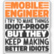 Funny Mobile Engineer Sayings "Mobile Engineer I Try To Make Things Idiot Proof But They Keep Making Better Idiots". Grab this Funny Mobile Engineer design as a funny gifts for an awesome mum, dad or friend.