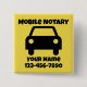 Advertise your notary public business with style and flair, even while running errands around town. Personalised button makes a thoughtful gift for any notary professional or loan signing agent who provides legal services to the public. This bold car symbol design is suitable for white and light-coloured backgrounds. Customise by changing "Your Name" a name, location, or any other text of your choice. Line two may be customised with a phone number, company name, web address, or any other text. Design tip: For long names you may need to adjust text size down.