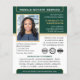 Professional Notary Public flyers with a profile photo, logo and accreditation symbols. This editable template is personalised with a name, credentials, area served, contact information and list of services. You can add your company logo and certification marks for branding. A classic blend of traditional and contemporary style, creating an elegant and friendly appearance, with fully customisable text to fit your business brand. Perfect for a Notary Public, Loan Signing Agent, Certified Notary Trust Delivery Agent (CNTDA), Mobile Notary, Apostille or other legal role — an effective way to advertise your business! Printed colours: very dark green, white and gold colour. Shop the online collection for more popular product ideas and supplies designed for notaries!