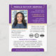 Professional Notary Public flyers with a profile photo, logo and accreditation symbols. This editable template is personalised with a name, credentials, area served, contact information and list of services. You can add your company logo and certification marks for branding. A classic blend of traditional and contemporary style, creating an elegant and friendly appearance, with fully customisable text to fit your business brand. Perfect for a Notary Public, Loan Signing Agent, Certified Notary Trust Delivery Agent (CNTDA), Mobile Notary, Apostille or other legal role — an effective way to advertise your business! Printed colours: purple and gold colour. Shop the online collection for more popular product ideas and supplies designed for notaries!