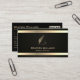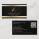 Stylish gold and black mobile notary business card has a gold gradient quill on a black suble striped background with gold bars. Add your notary business details and QR code on the back. An impressive look for your business.
