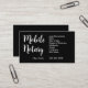 Mobile Notary appears in a large elegant script. You can add your name under the script. Digits for your phone number are under the list of services, which is next to the script. The business card is black. The text is white. All text can be edited or deleted.