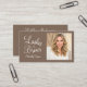 Mocha Brown Cream Script Photo Lashes and Brows Business Card