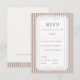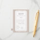 Elegant wedding RSVP card featuring classic mocha brown French stripes and a delicate scalloped lace frame for a refined vintage look. Designed in a soft neutral ivory and mocha palette, this RSVP card offers a clean, easy-to-complete layout while coordinating beautifully with neutral wedding stationery suites, farmhouse elegant celebrations, and timeless romantic wedding themes. A polished and cohesive addition to your wedding invitation set.