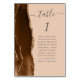 The left-hand edge of this elegant modern wedding table number card features a mocha brown watercolor agate border trimmed with faux gold glitter. The word "table" appears in charcoal grey handwriting script on a tan background. Add the names of your guests who are assigned to each table.