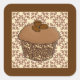 Mocha / Coffee Frosted Cupcake, Lace Background Square Sticker