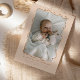 Whimsical and sweet birth announcement card featuring hand drawn photo frame of mocha brown line with bows.