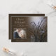 Rustic Nature Photo Save the Date - Your photo with this warm mocha brown theme, a soft glow behind a pretty display of cattails and grasses with sparkly dragonflies glistening in the glow - the back is a coordinating colour easy to customise template - original artwork © by WhimsicalArtwork™ for theBarefootBride ™. This is part of a complete wedding stationery suite, as well as Baby Shower, Birthday and Christening Invitations. For question or assistance please contact designer indy.designer@yahoo.com.