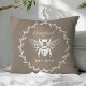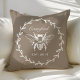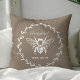 Mocha Honey Bee Laurel Honeycomb Monogram Cushion