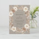 This design features a warm palette of mocha, cream, and tan watercolor florals. Delicate roses and ranunculus are arranged with soft, earthy foliage to create a romantic atmosphere. These neutral tones provide a refined bohemian aesthetic perfect for an outdoor or autumn event.