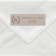 A mocha, brown colored background. Decorated with a wreath. Personalize and add your name, address and family monogram initial. Warm taupe colored text.