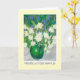 A pretty birthday card with 'Happy Birthday' in Welsh, and a vase of creamy white Mock Orange Blossom and sky blue Ceanothus; from an original oil pastel painting by Judy Adamson.