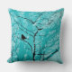 Mockingbird in Tree Branch Turquoise Throw Pillow