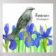 A poster decorated with a mockingbird in a bed of royal blue iris flowers drawn with ink and painted with watercolor. Inspired by the state bird and state flower of Tennessee. You can edit or remove the text to fit your needs.