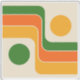 A dynamic abstract composition featuring two bold circles—one yellow, one green—linked by three flowing bands in green, orange and yellow. Each stripe is bordered by crisp lines, curving gracefully across a soft beige background. The interplay of shape and color evokes 1970s graphic design, balancing visual rhythm with sculptural simplicity. The result is a harmonious, retro-inspired piece that captures motion, contrast, and editorial clarity.