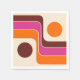 A dynamic abstract composition featuring two bold circles—one orange, one dark brown—linked by three flowing bands in orange, pink, and brown. Each stripe is bordered by crisp lines, curving gracefully across a soft beige background. The interplay of shape and color evokes 1970s graphic design, balancing visual rhythm with sculptural simplicity. The result is a harmonious, retro-inspired piece that captures motion, contrast, and editorial clarity.