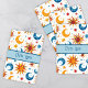 A fun abstract sun, moon, and stars theme decorates the back of these playing cards. Perfect for game night or as a unique gift. Great stocking stuffer! Name can be changed. AI assisted graphic purchased with commercial use. Artwork: RavenPrintableDesign