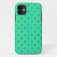 A bright lime and aqua mod pattern decorates this stylish iPhone case. The design is from original art.