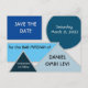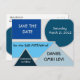 A save the date postcard to coordinate with the Mod Blue Shapes collection.